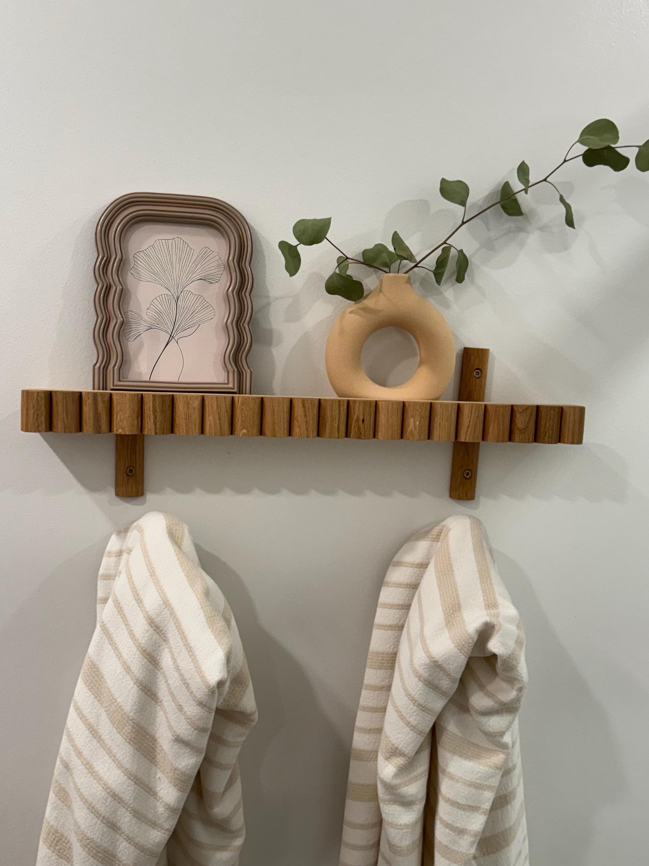 Half-moon oak brackets mirror the fluted profile, creating a sculptural silhouette thatβs both practical and decorative.