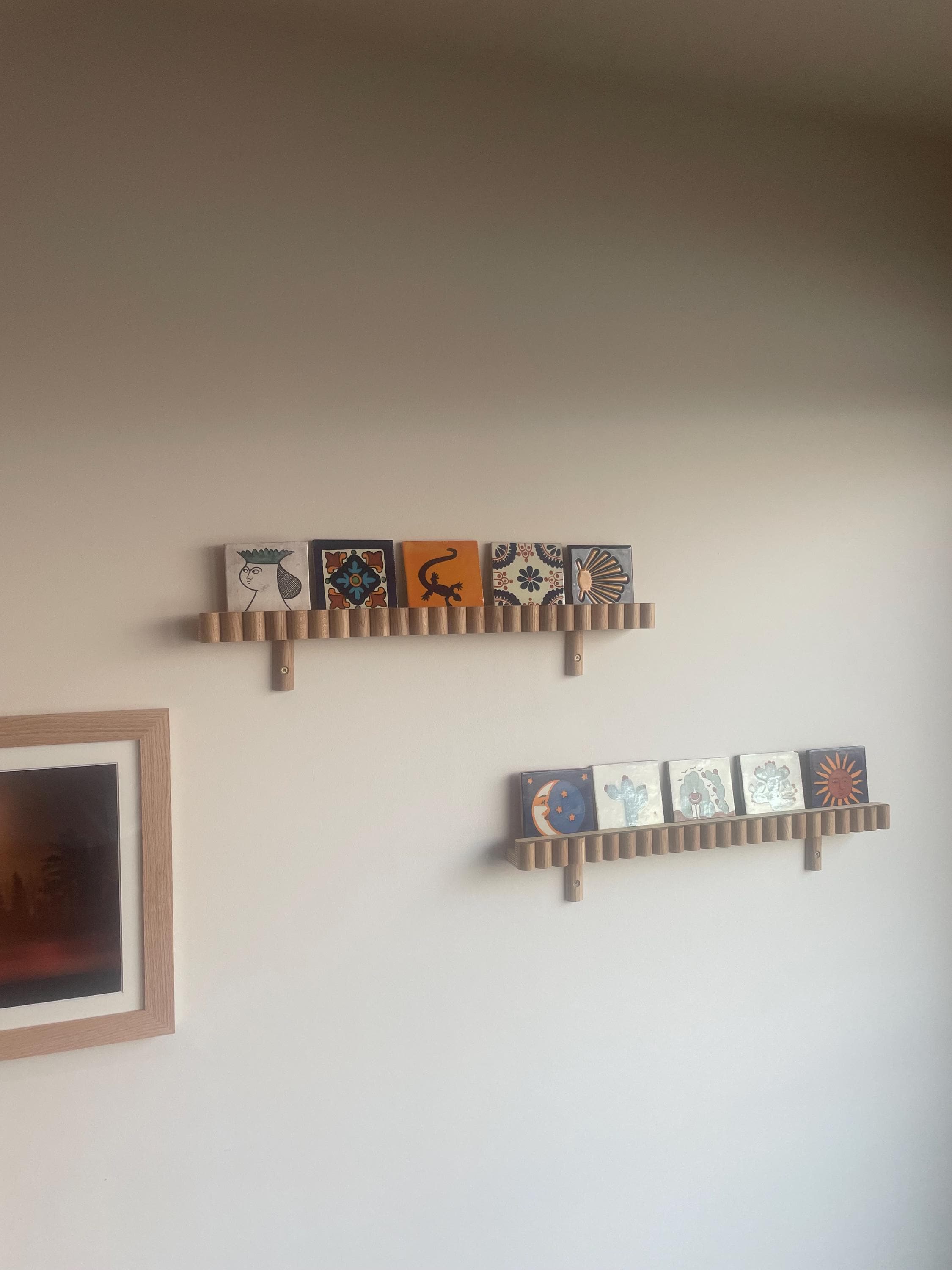 Ideal for displaying art prints, children’s books, perfumes, plants, or curated décor collections, this versatile floating picture ledge works beautifully in nurseries, bathrooms, living spaces, or gallery walls. Perfect for Scandi, mid-century, boho, or minimalist interiors, the warm grain of solid oak contrasts beautifully with the soft shimmer of birch, transforming everyday storage into a statement design feature.