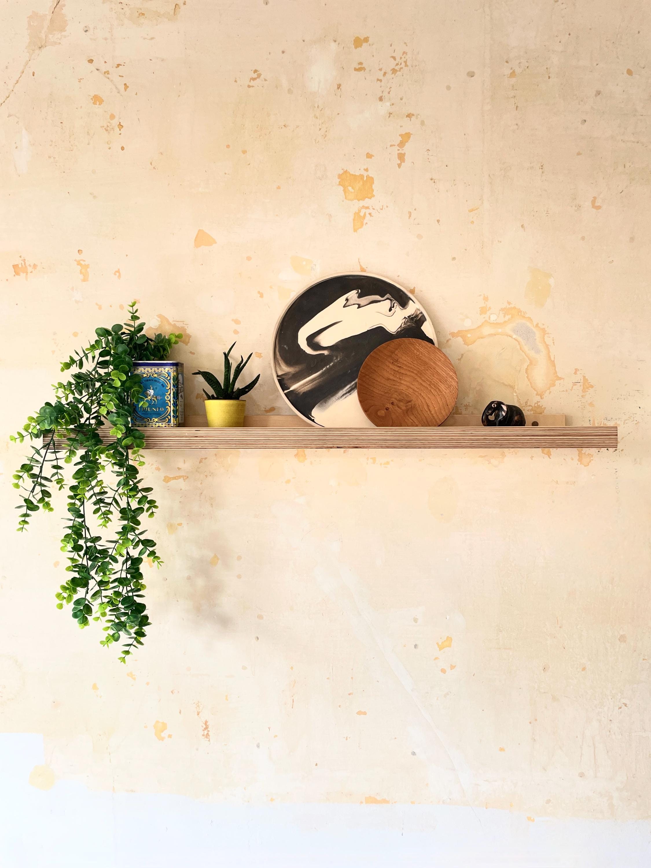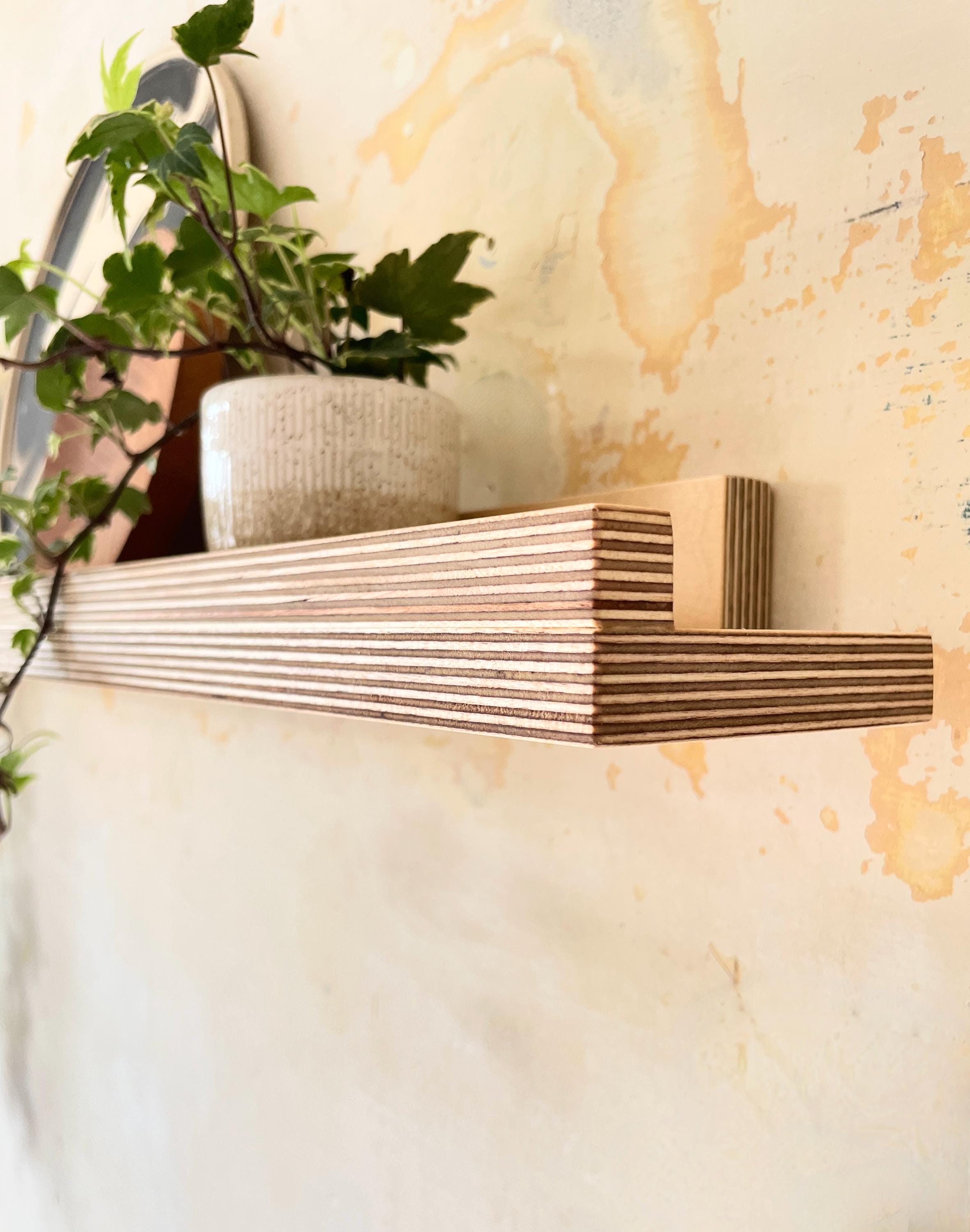 Handcrafted in England and shipped quickly to U.S. customers, this shelf lets the layered character of birch plywood take centre stage. The double-thickness front lip highlights the crisp linear grain pattern, while the inset rear bracket creates visual balance and a refined floating appearance.