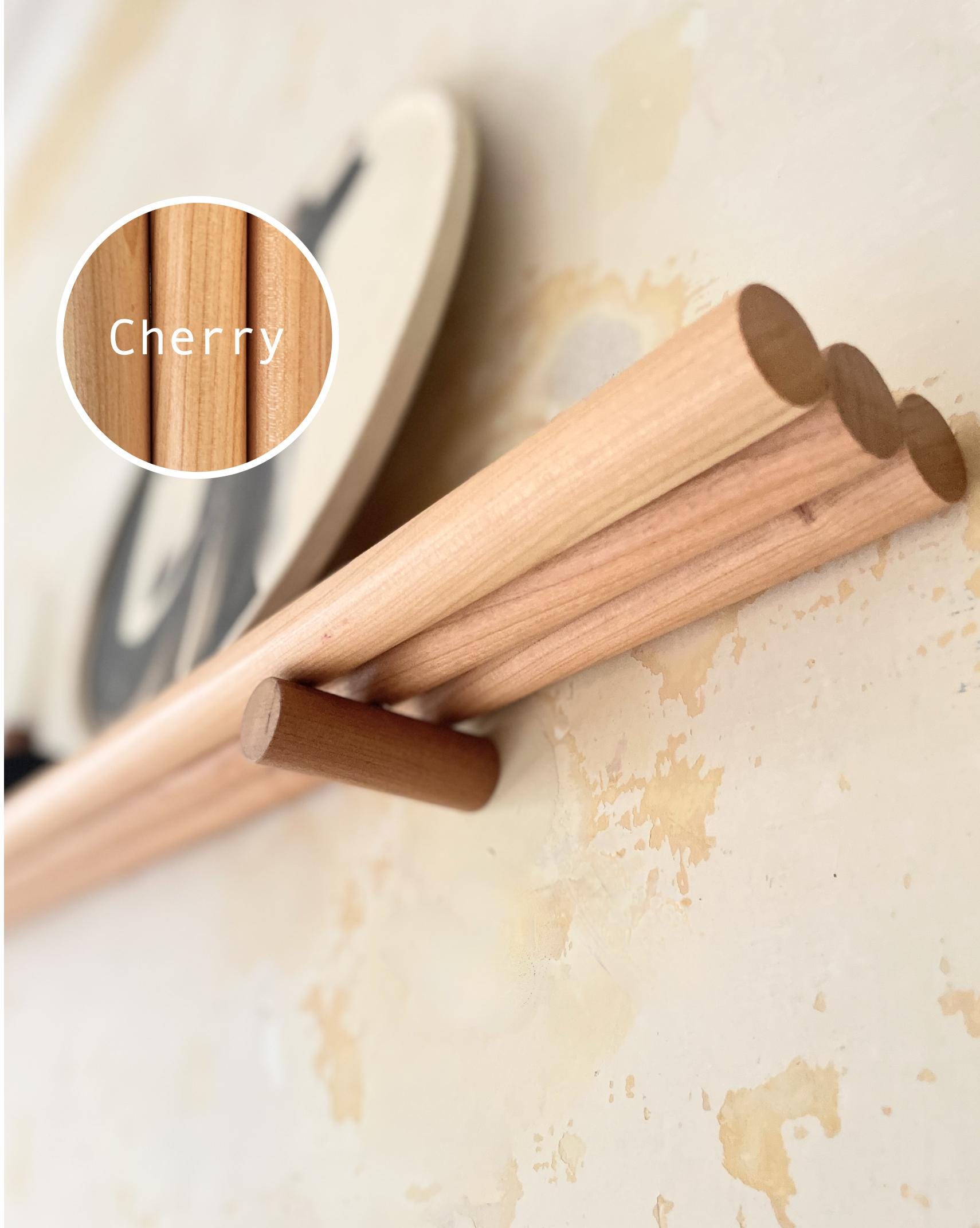 Matching dowel brackets neatly conceal the wall fixings, creating a clean, architectural floating appearance. Minimal, functional, and beautifully made, this piece is perfect for curating a tidy gallery wall or adding subtle warmth and texture to modern interiors.