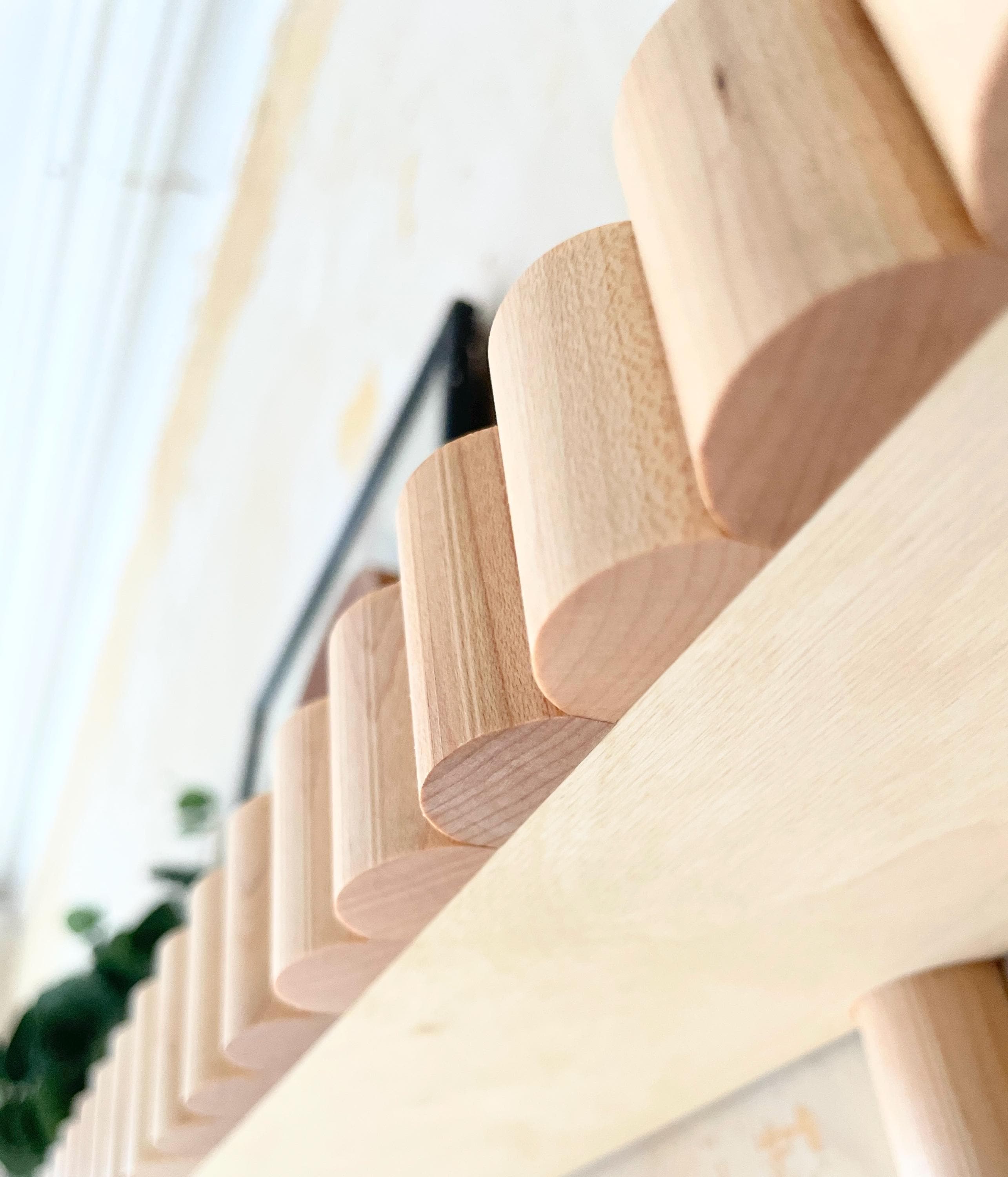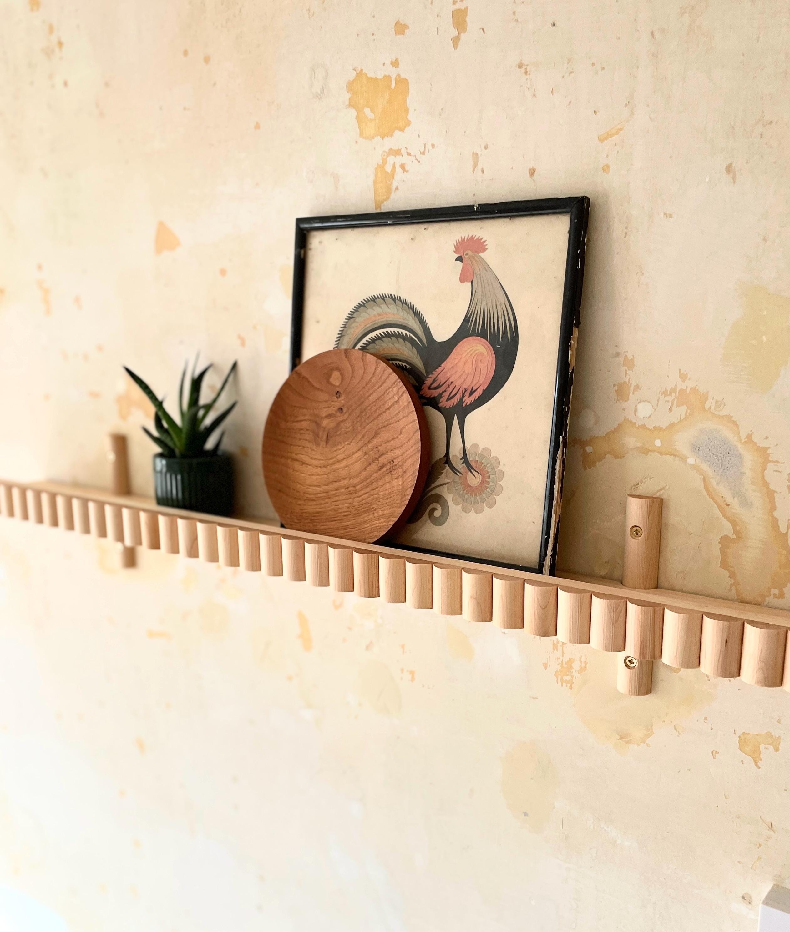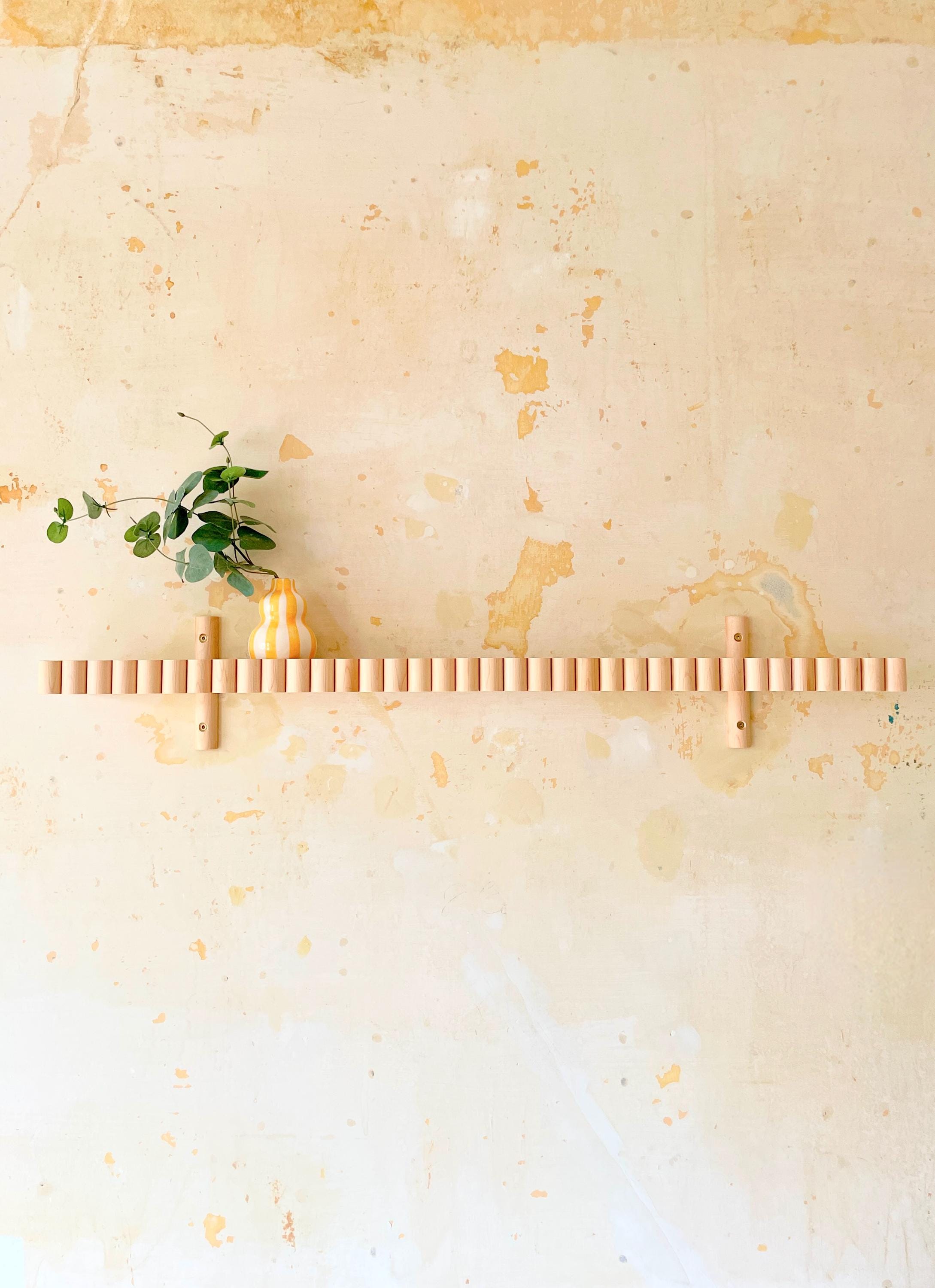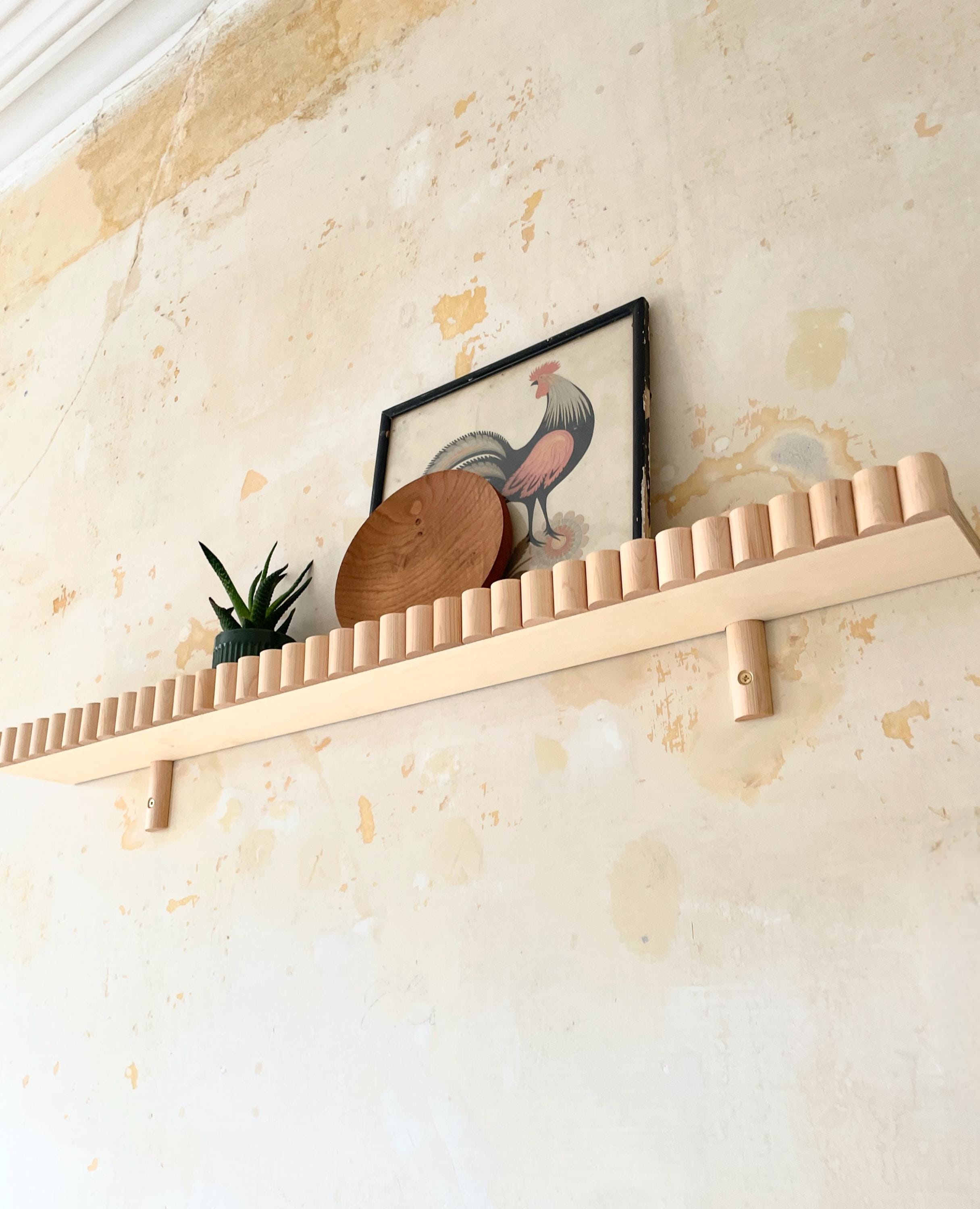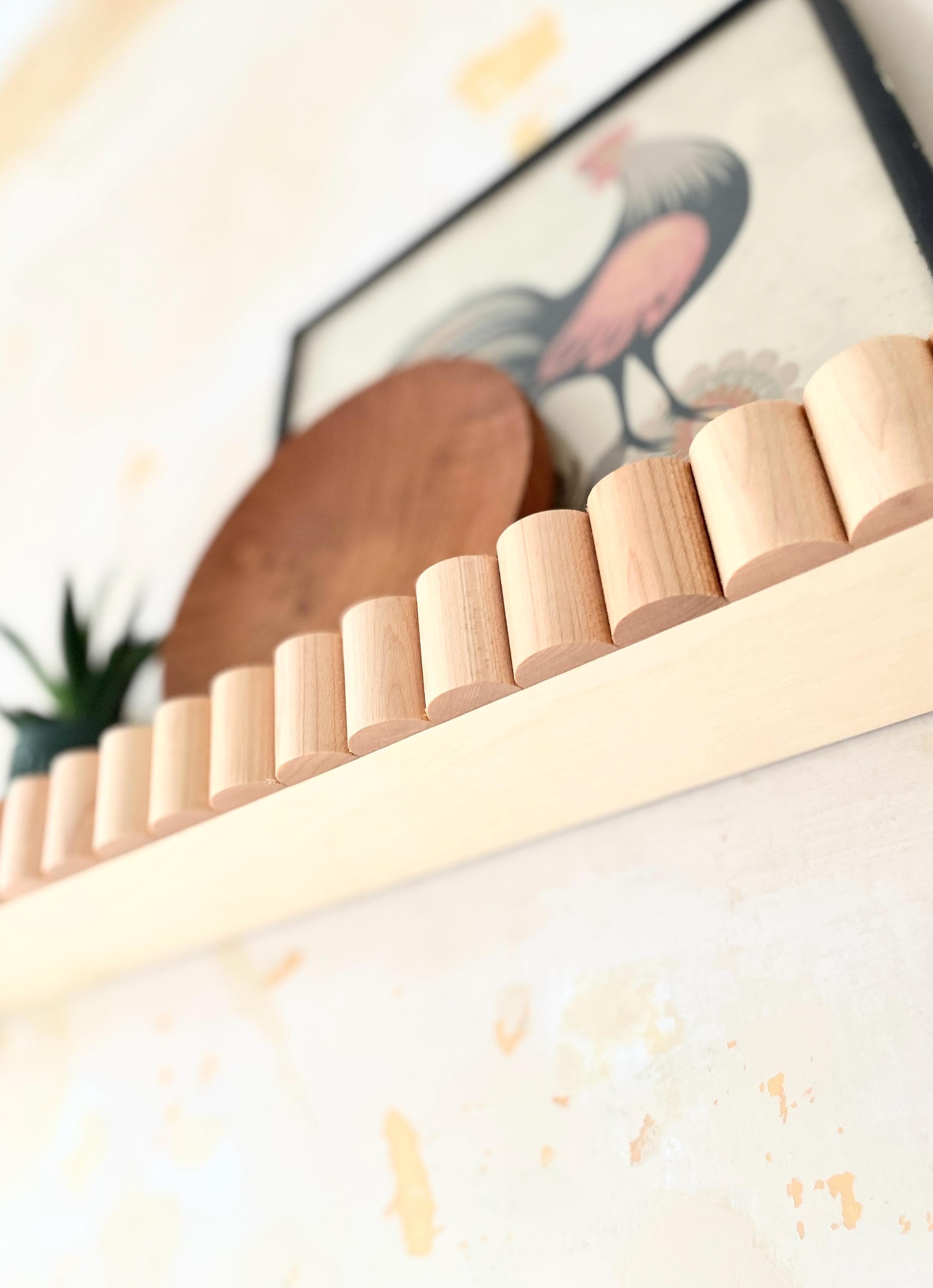 A light, sculptural scalloped floating shelf crafted from solid Maple with a timeless Art Deco influence.