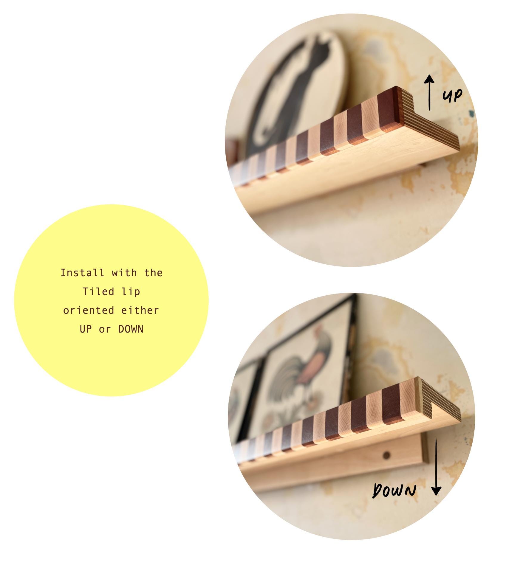 Install with the lip facing up (as shown) for a contained display edge, or flip it down for a cleaner minimalist look.