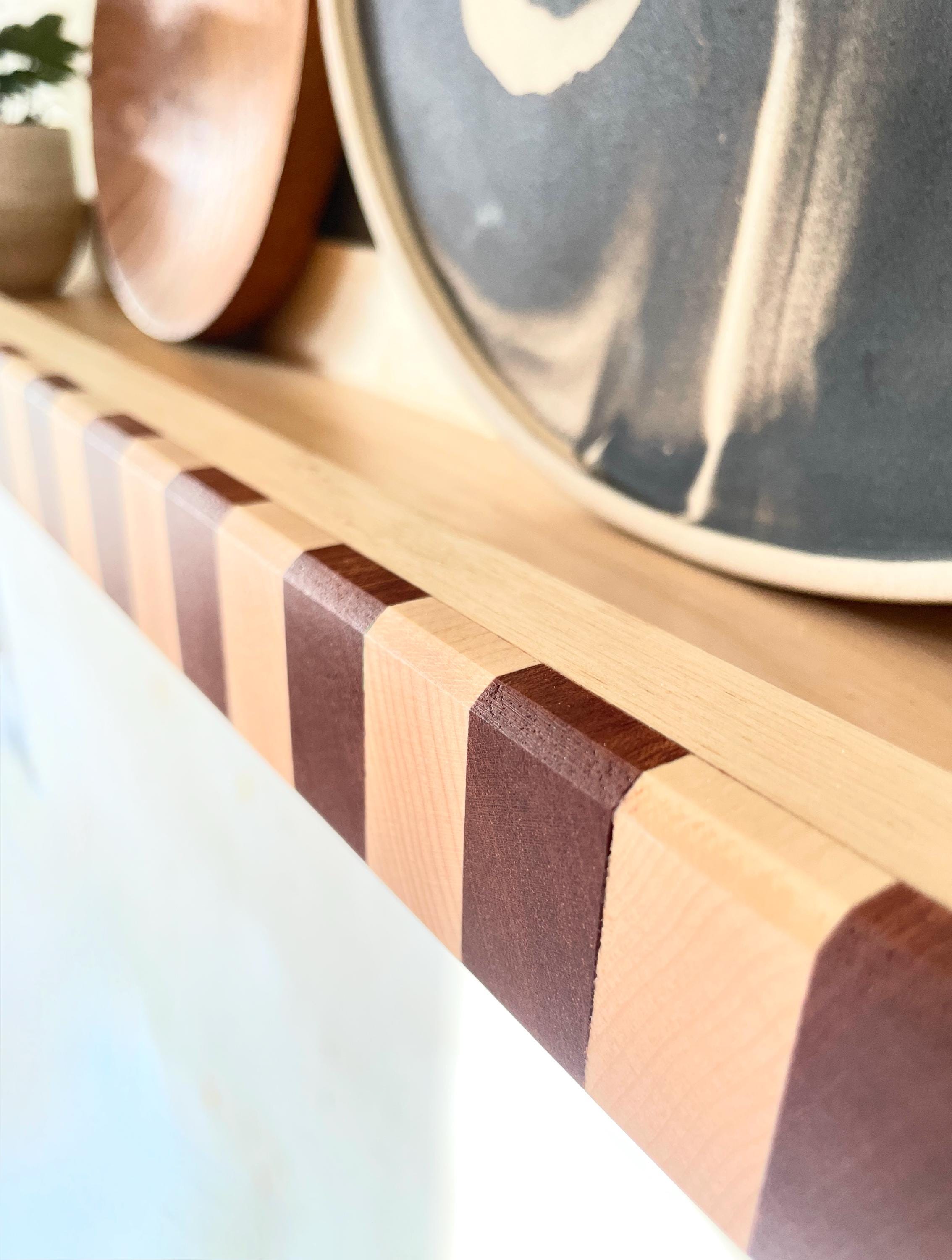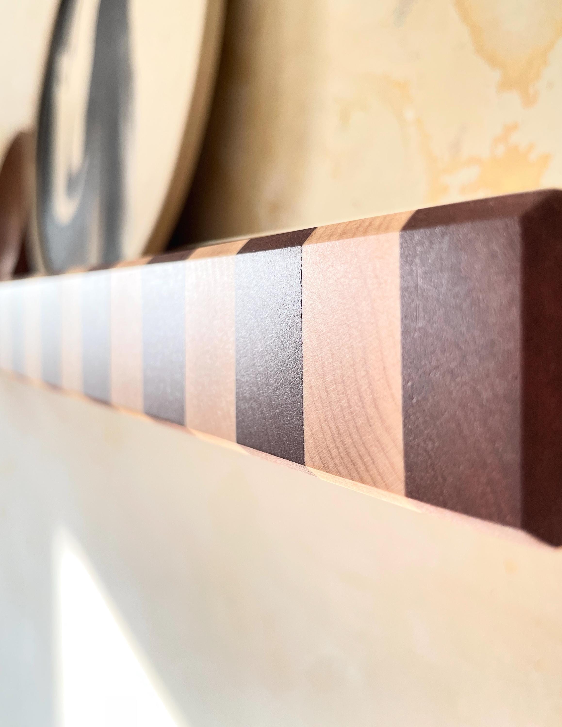 Perfect as an Art Deco statement wall shelf, gallery display, forward-facing bookshelf, or sculptural floating shelf for mid-century, modern, or eclectic interiors.