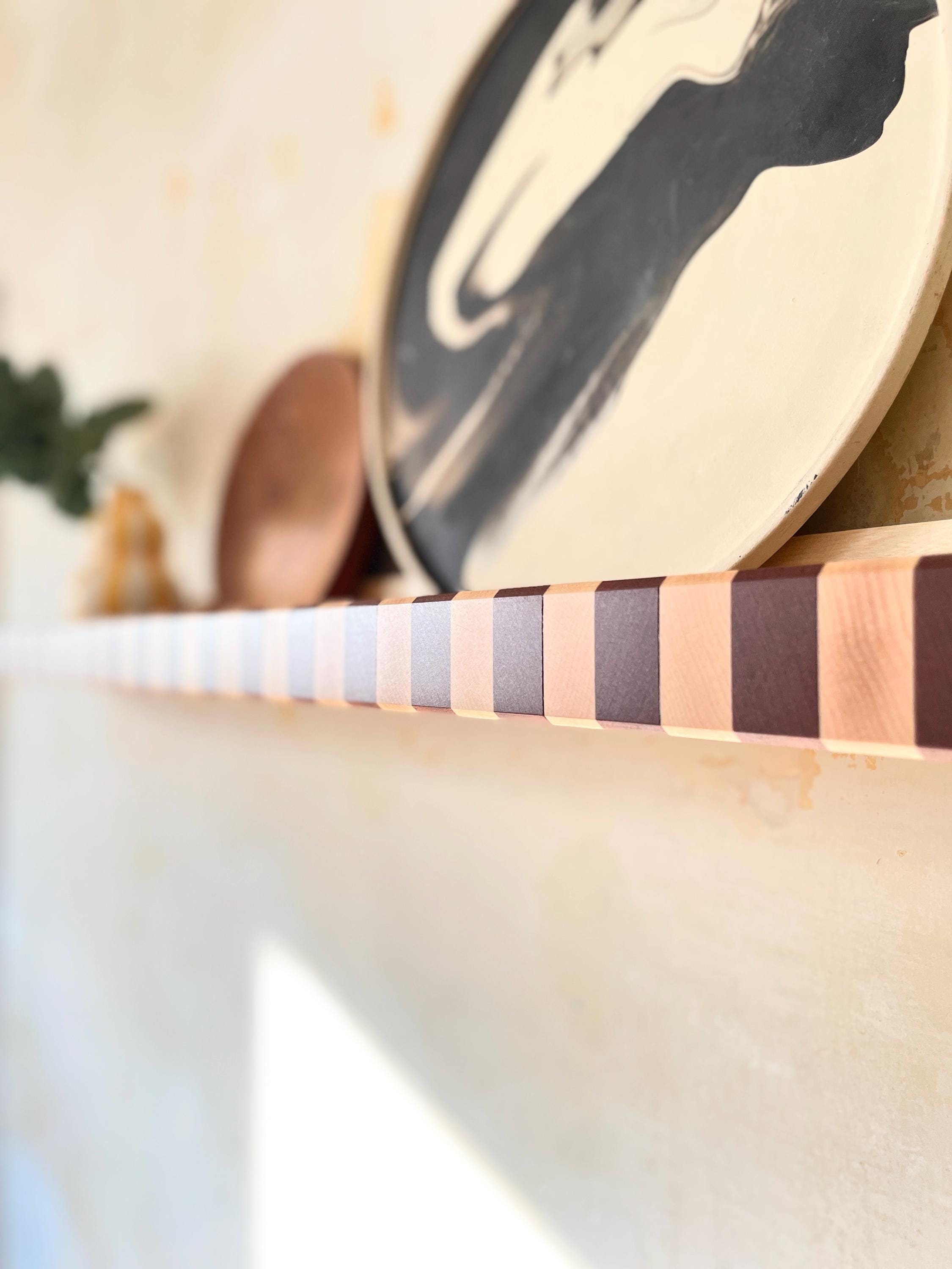 This bold floating picture shelf turns everyday storage into a sculptural Art Deco design statement.